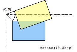 A quantidade de rotação criada por rotate() é especificado por um <angle>. Se positivo, o movimento será no sentido horário; Se negativo, ela será no sentido anti-horário. Uma rotação de 180° é chamada de point reflection (reflexão do ponto).
